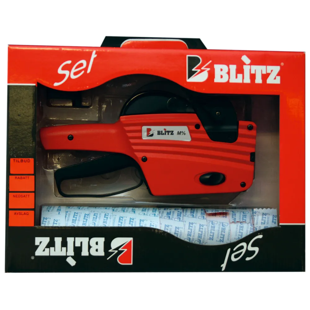 Vis mer Favoritt Prismaskin Blitz C6, Displaypakn. m/ 4 rl etiketter Referanse: 335135 En-linjes prismaskin med 6 siffer. Pakket i salgsdisplay med 4 ruller hvite etiketter. Favoritt