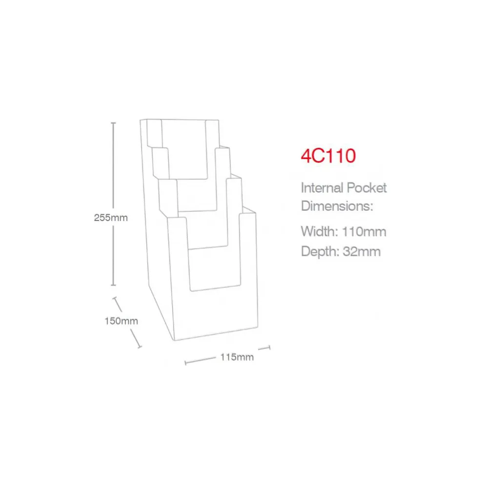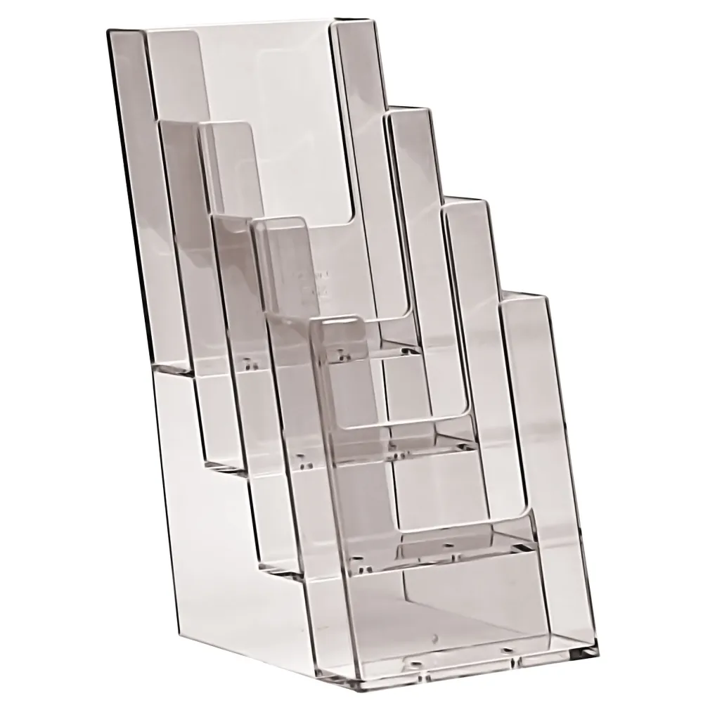 Vis mer Favoritt Brosjyreholder 4x1/3 A4 trapp-4C110 Referanse: 362021 Brosjyreholder i klar akryl, som benyttes på bord. Favoritt