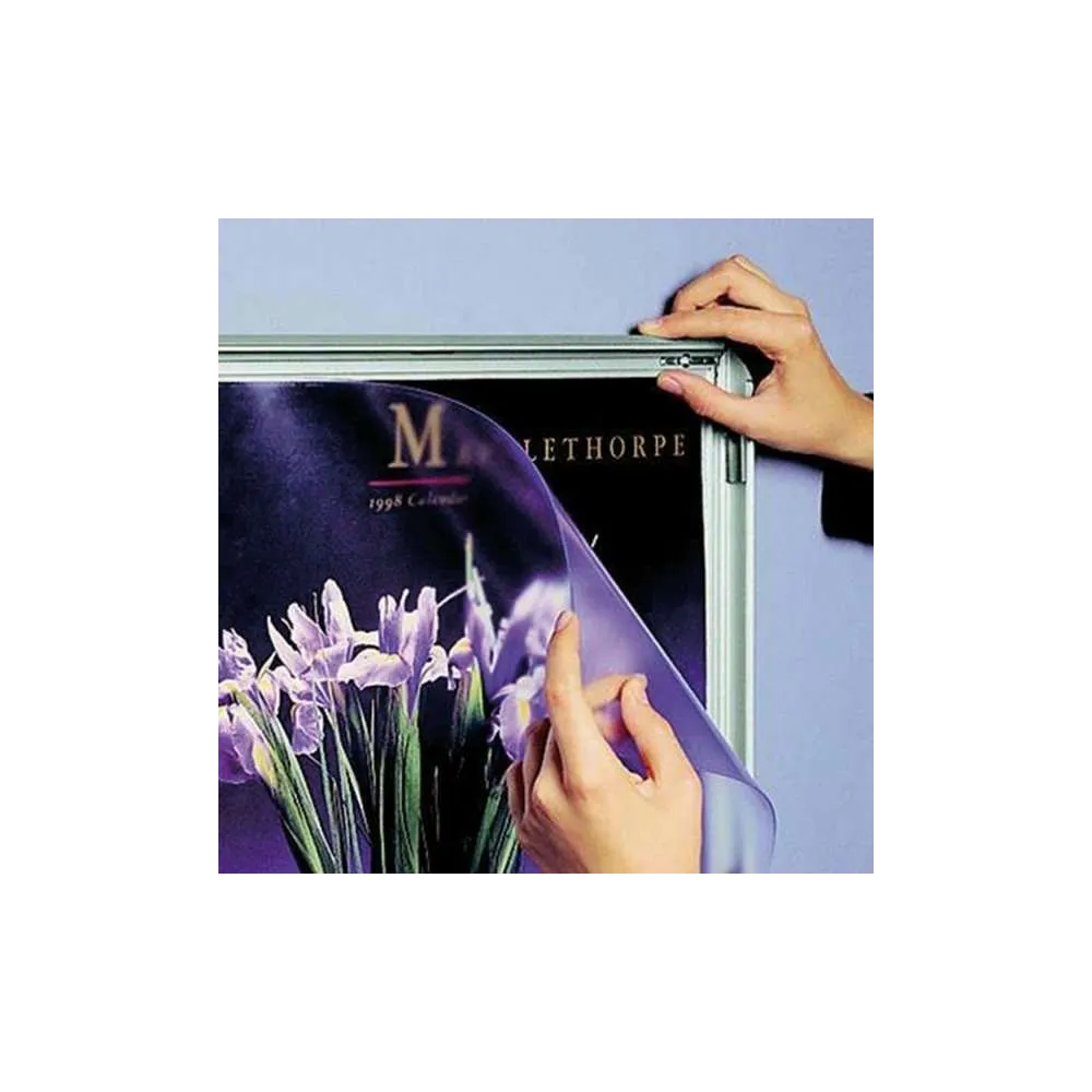 Anti refleks frontplate som brukes foran plakaten på rammer og plakatstativ.