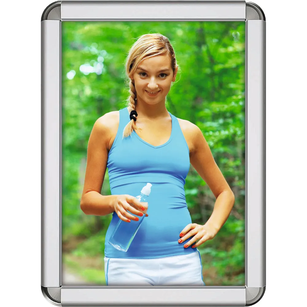 Plakat skiftes ved at profilene på rammen vippes ut og plakaten legges bak dekkplasten.
