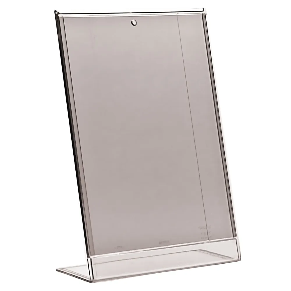 Vis mer Favoritt Brosjyre-/menyholder A4, med sort ramme, skrå "L", Stående Referanse: 328348 Skråstilt holder i klar polystyren, med en sort ramme for å fremheve informasjonen,samt å gi det en finere innramming. Beregnet for ett ark. Favoritt