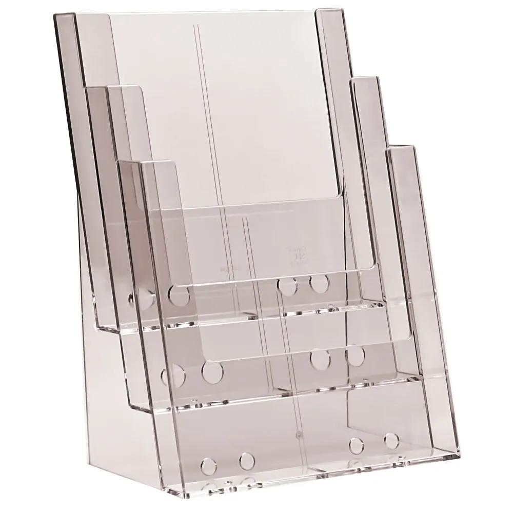 Vis mer Favoritt Brosjyreholder PS, 4 roms A4 Referanse: 328930 Brosjyreholder i klar polystyren, som kan benyttes både på bord og vegg. Favoritt