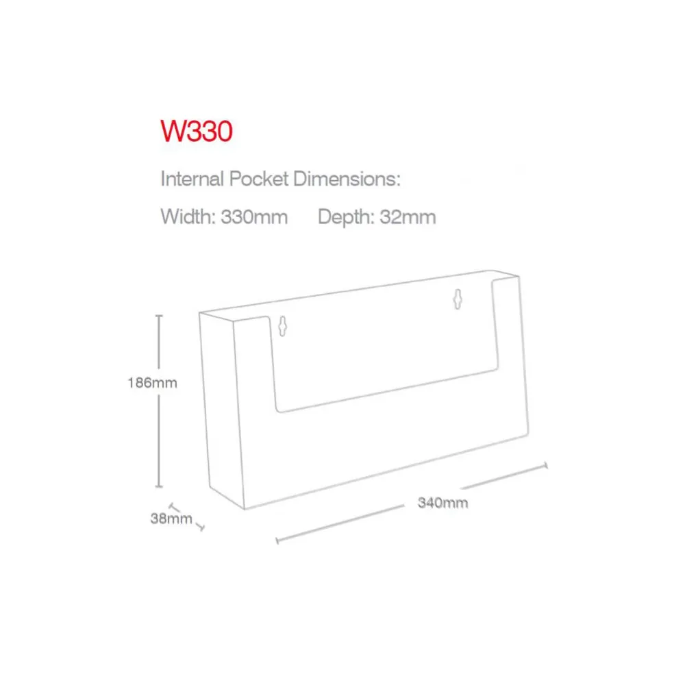 Brosjyreholder i klar akryl, som kan skrus eller limes på vegg.