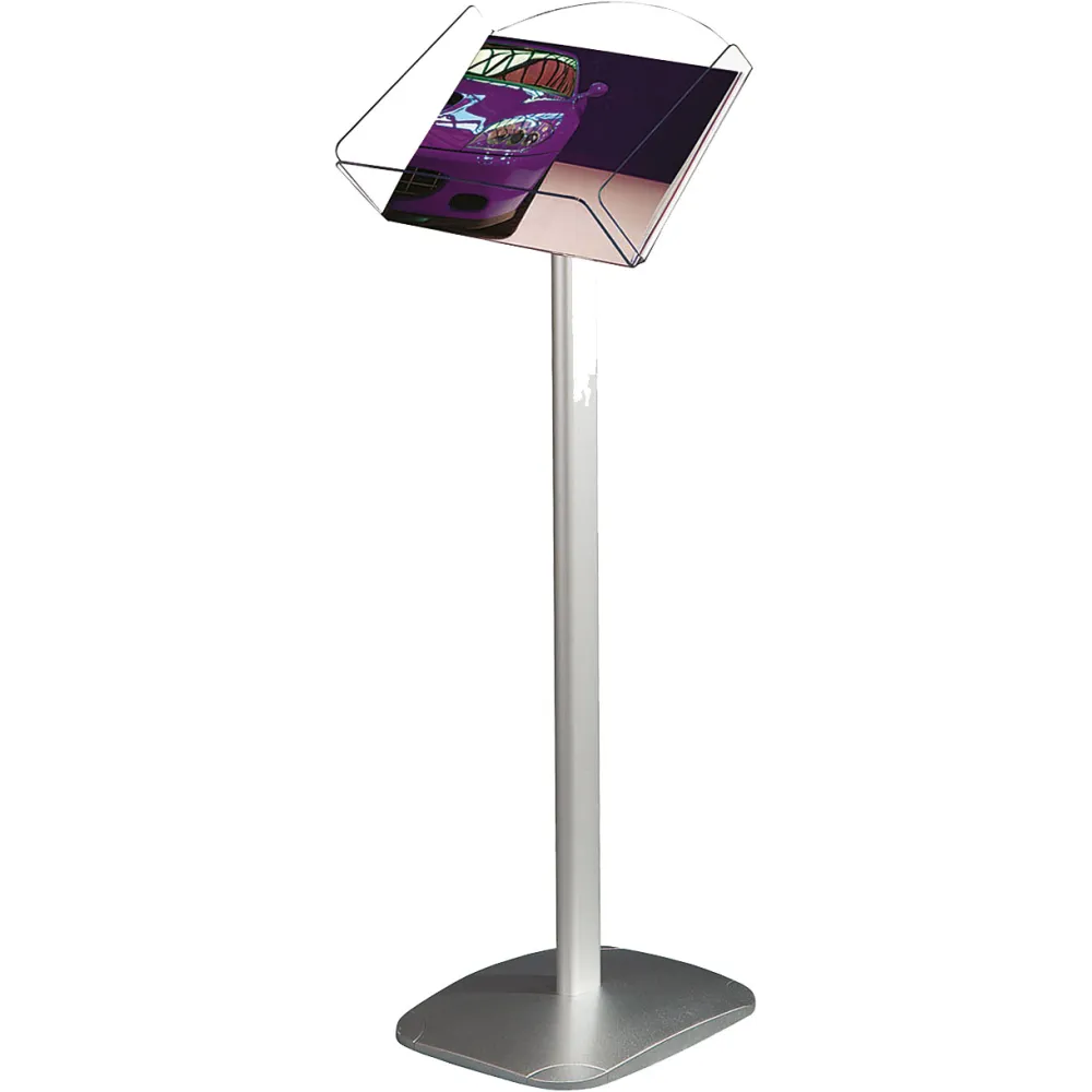 Brosjyreholder med tung fot, liggende A4 brosjyerholder i klar akryl.