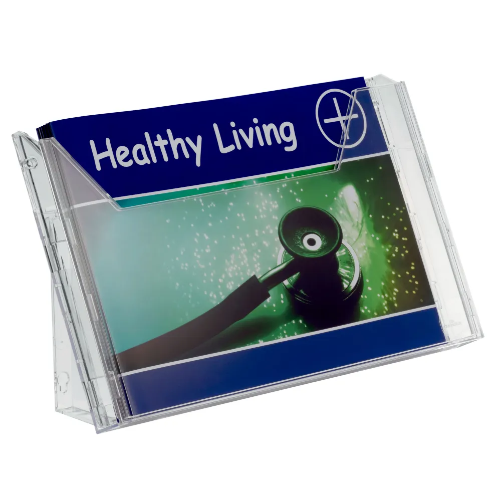 Transparent brosjyreholder til brosjyrer A4 liggende.