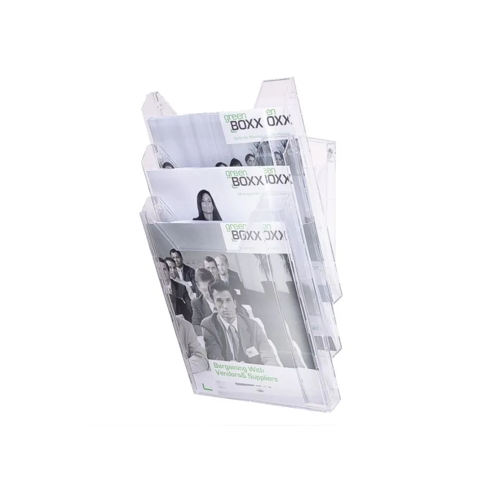 Påbyggbar transparent brosjyreholder 3xA4, Stående format.