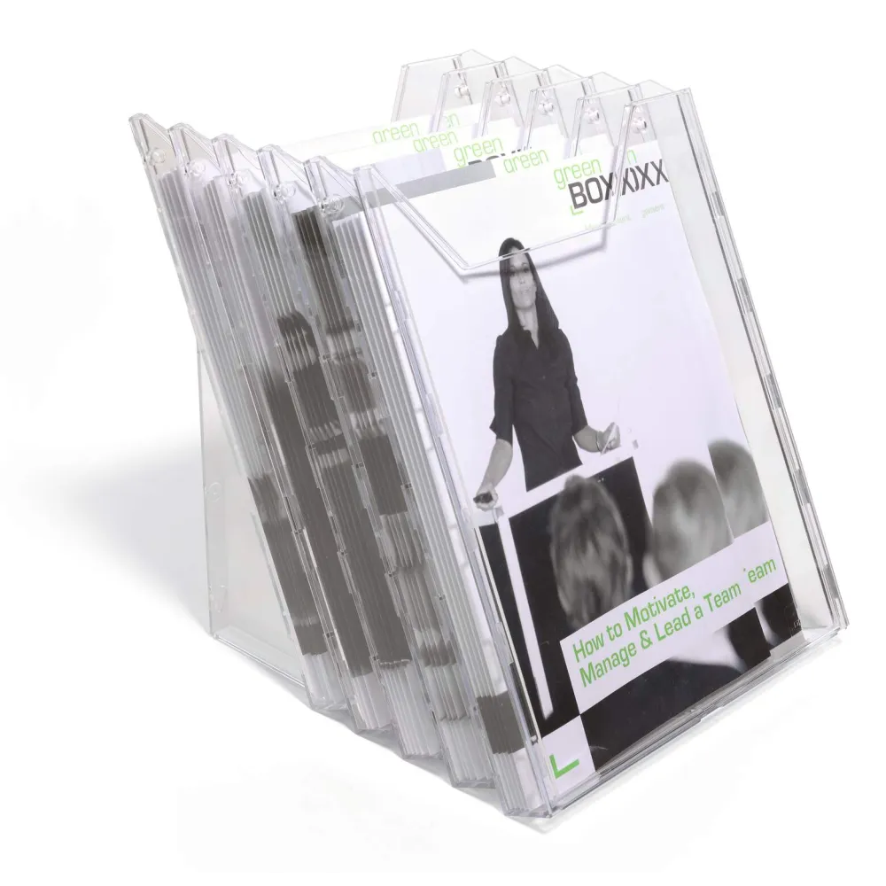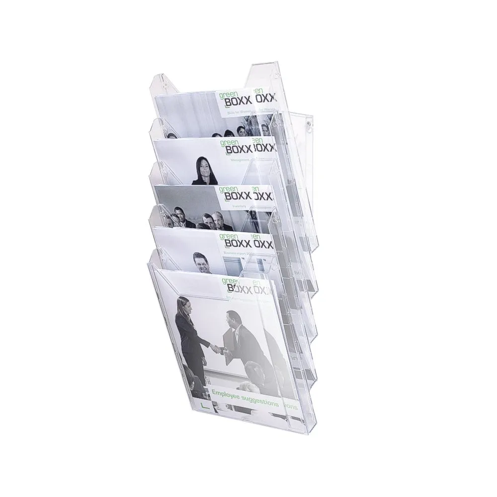 Påbyggbar transparent brosjyreholder 5xA4, Stående format.