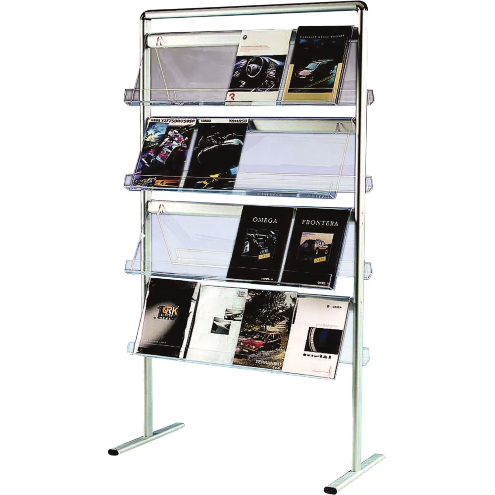 Dobbelsidig aluminiums brosjyrestativ med 3 mm akrylhyller.
