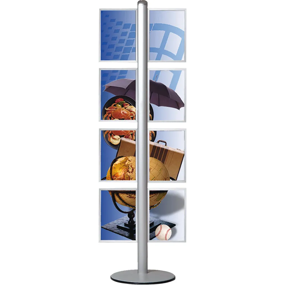 Dobbelsidig eloksert aluminium stander med 8 x A4 Slide-in rammer.