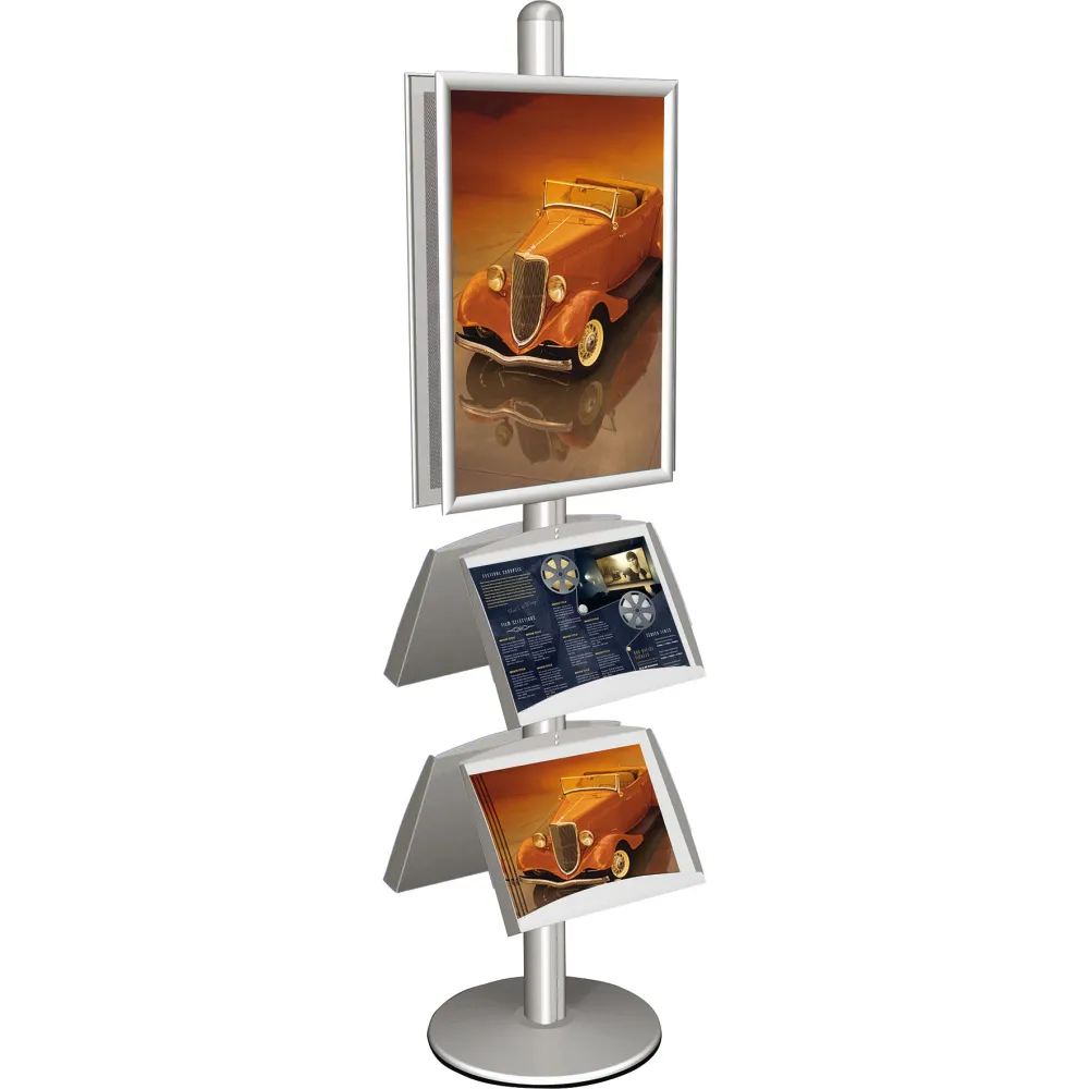 Dobbelsidig eloksert aluminium stander med 2 x 70x100 cm Snapramme 25mm og 4 x A3 stålhyller.
