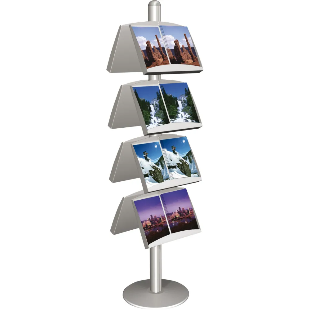 Dobbelsidig eloksert aluminium stander med 8 x A3 stålhyller.