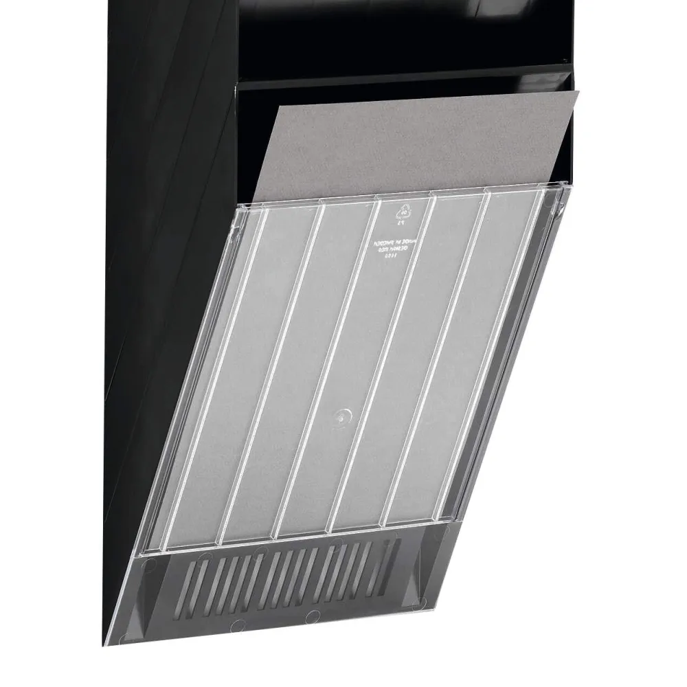 Påbyggbart brosjyrestativ med 12 rom og en frontplate, A4 liggende.