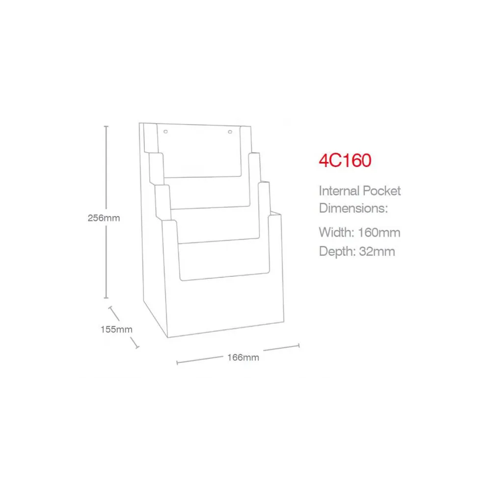 Vis mer Favoritt Brosjyreholder PS, 4 roms A5 Referanse: 328933 Brosjyreholder i klar polystyren, som kan benyttes både på bord og vegg. Favoritt
