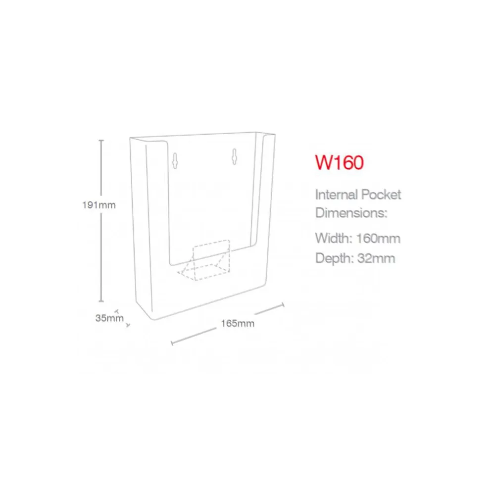 Brosjyreholder i klar akryl, som kan skrus eller limes på vegg.