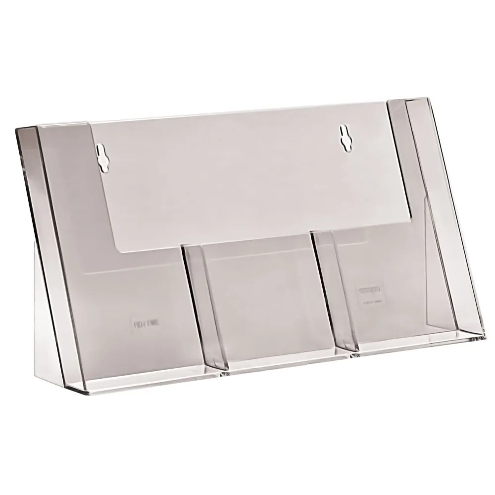 Vis mer Favoritt Brosjyreholder PS, 3 roms A6 Referanse: 328935 Brosjyreholder i klar polystyren, som kan benyttes både på bord og vegg. Favoritt