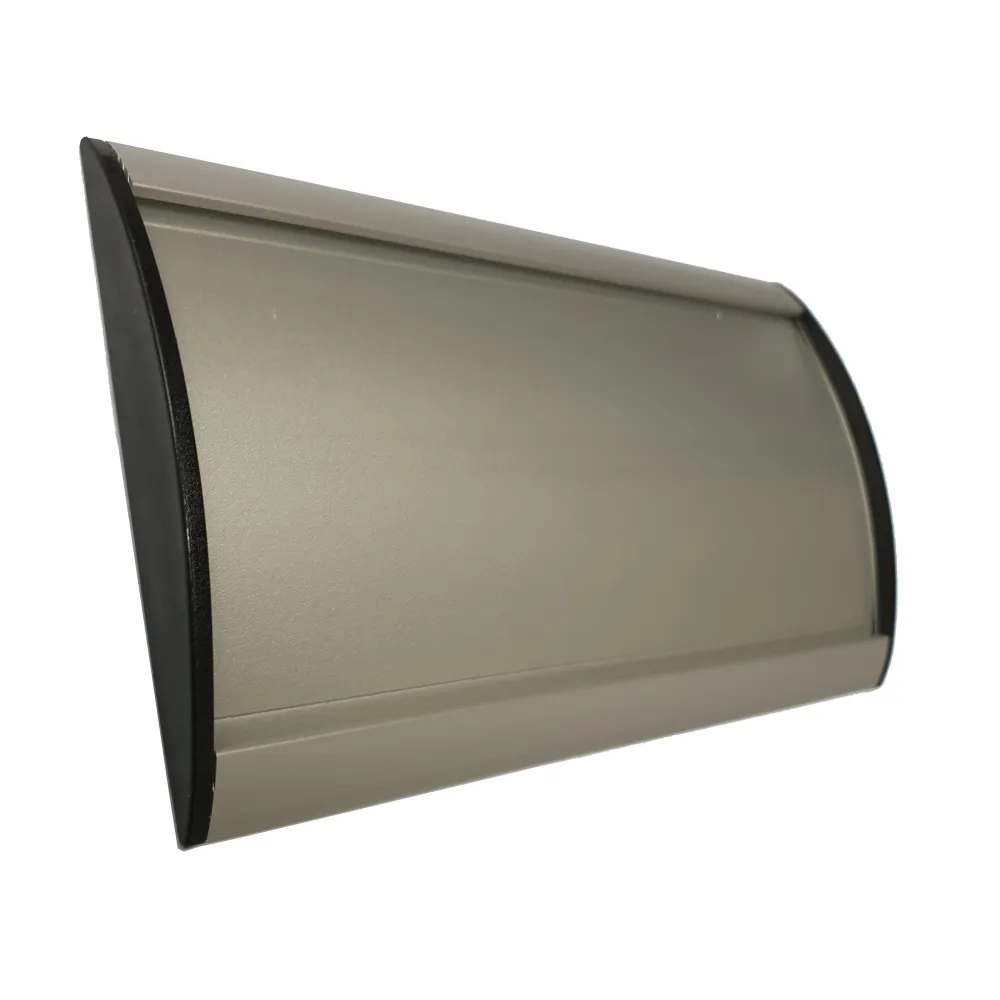 Dørskilt produsert i eloksert Aluminium, med sorte plast endestykker.APET frontplate gjør bytte av innhold enkelt.Leveres med dobbelsidig tape og sugekopp.