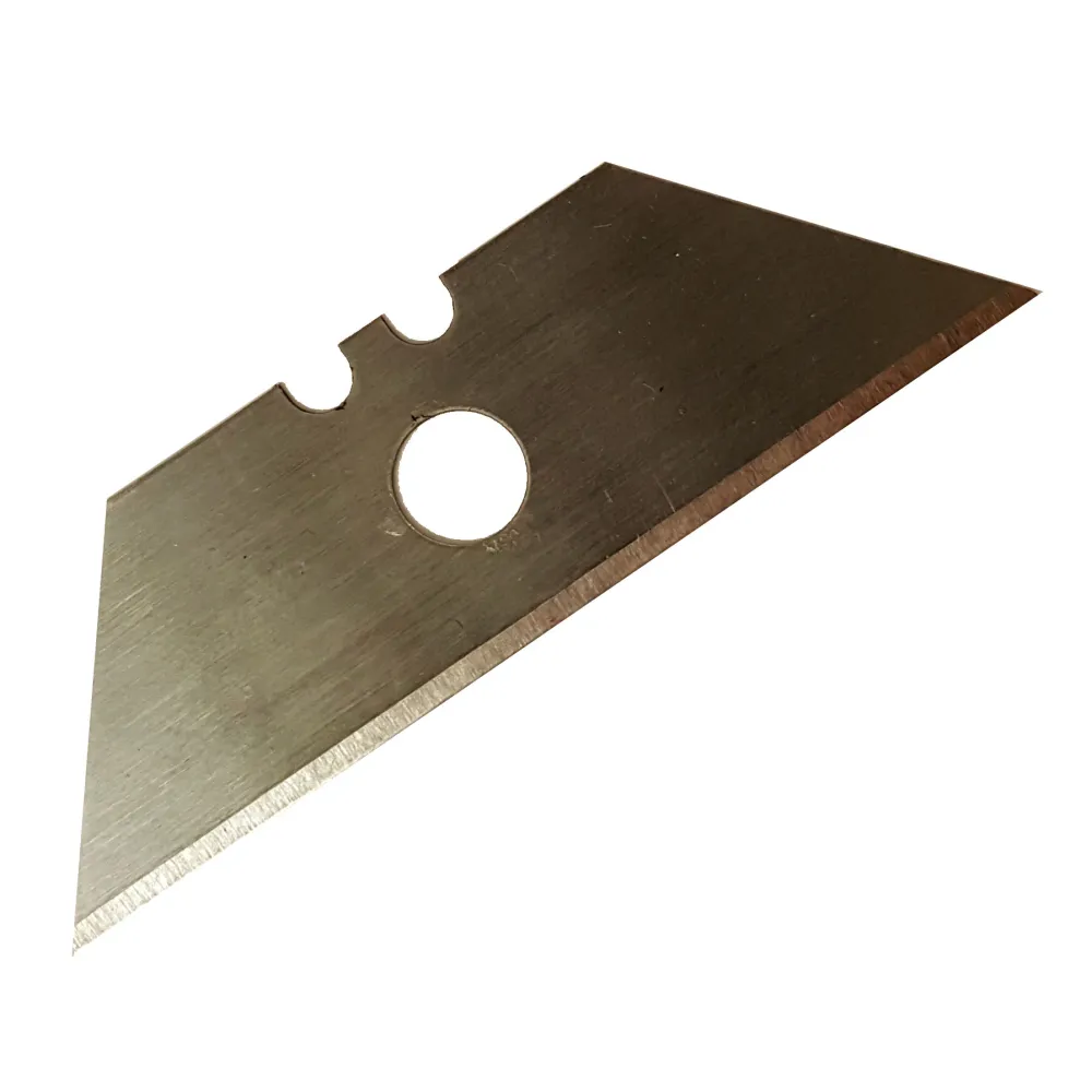 Sikkerhetskniv i plast, med fjærbelastet knivblad, som fysisk må skyves ut når det skal brukes.