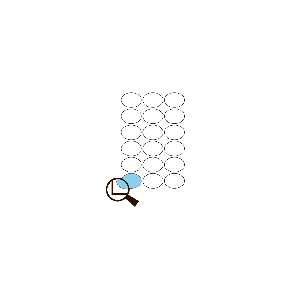 18 etiketter på hvert A4 ark i størrelse Oval 57x44mm (BxH).