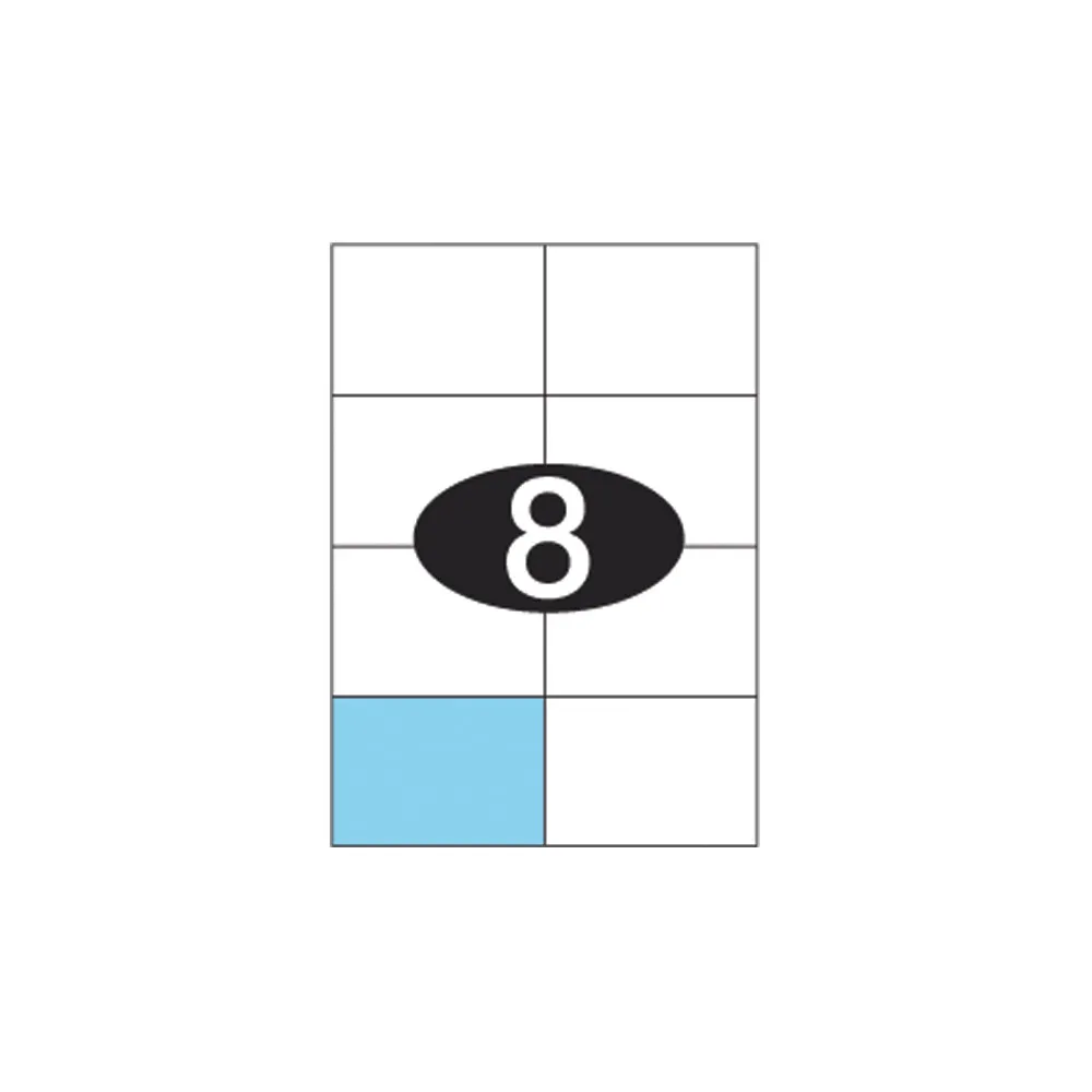 8 etiketter på hvert A4 ark i størrelse 105x74mm (BxH).