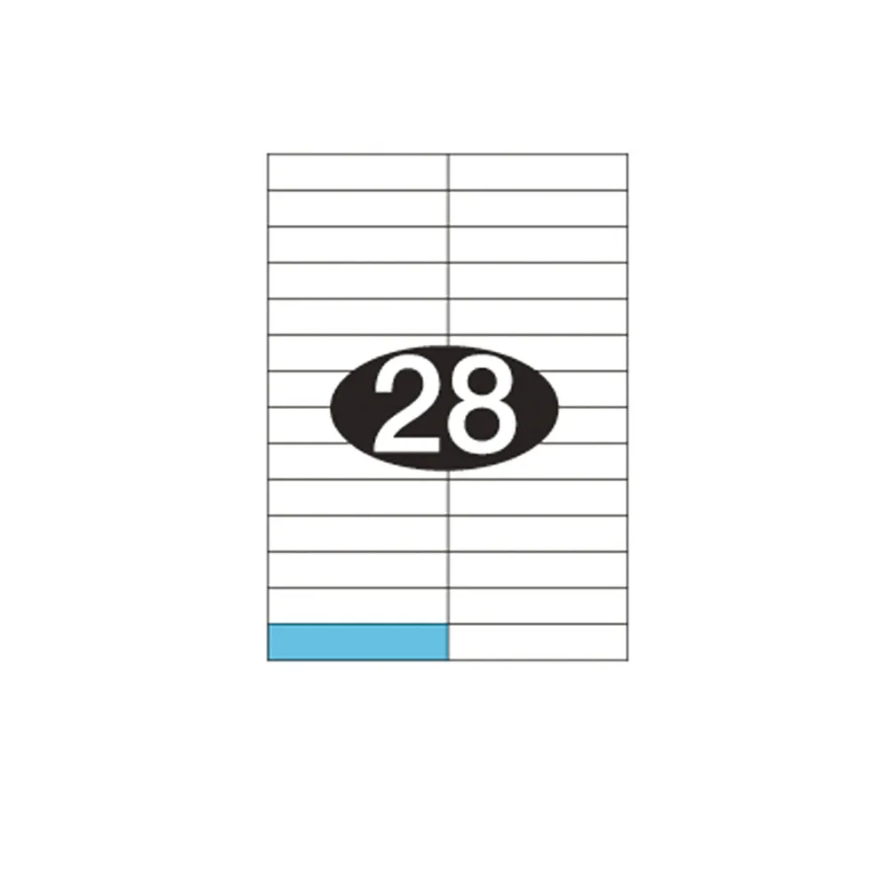 28 etiketter på hvert A4 ark i størrelse 105x21,21mm (BxH).