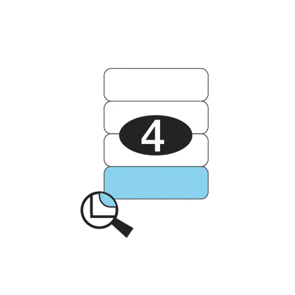 4 etiketter på hvert A4 ark i størrelse 190x61mm (BxH).