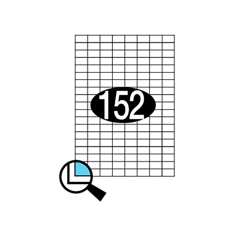 152 etiketter på hvert A4 ark i størrelse 25x15mm (BxH).