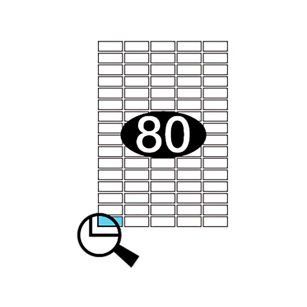 80 etiketter på hvert A4 ark i størrelse 35,6x16,9mm (BxH).