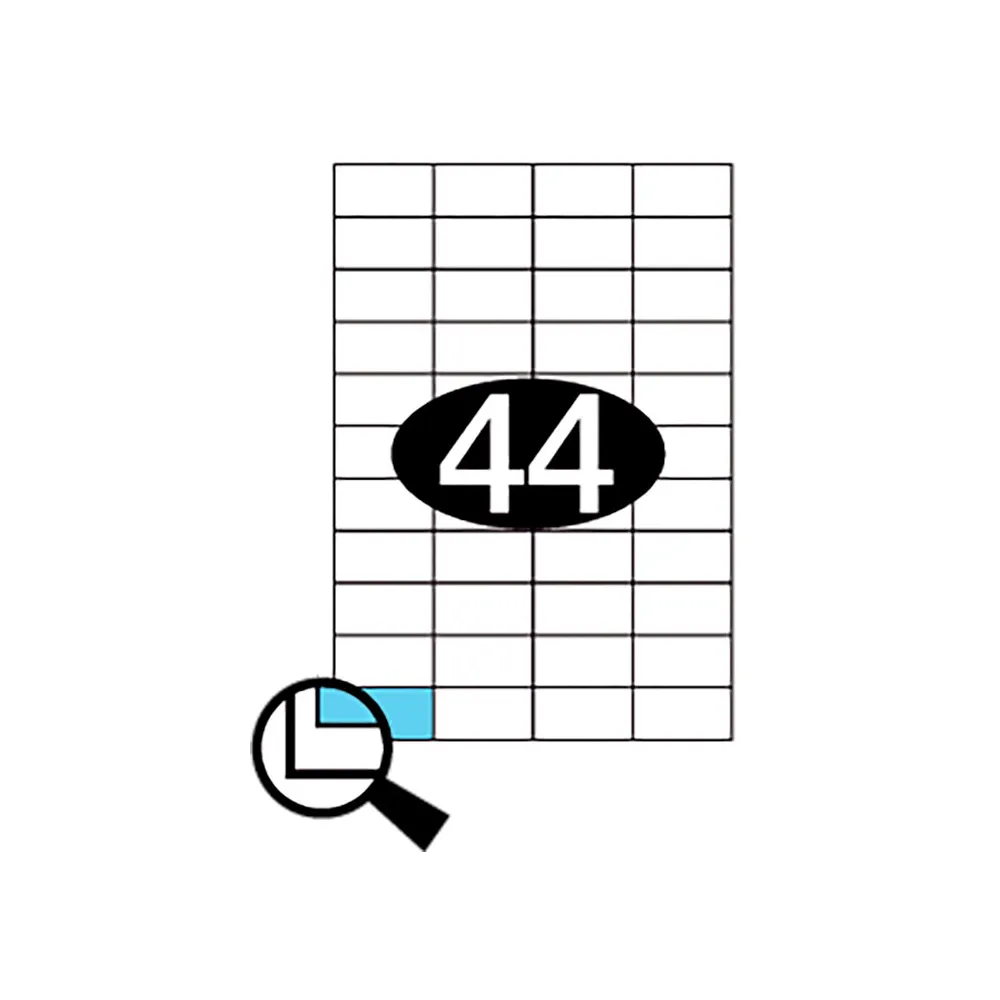 44 etiketter på hvert A4 ark i størrelse 48,5x25,4mm (BxH).