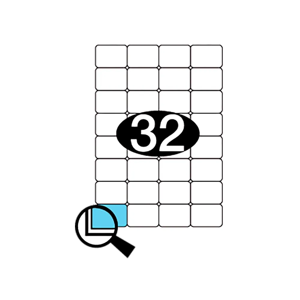 32 etiketter på hvert A4 ark i størrelse 51x36mm (BxH).