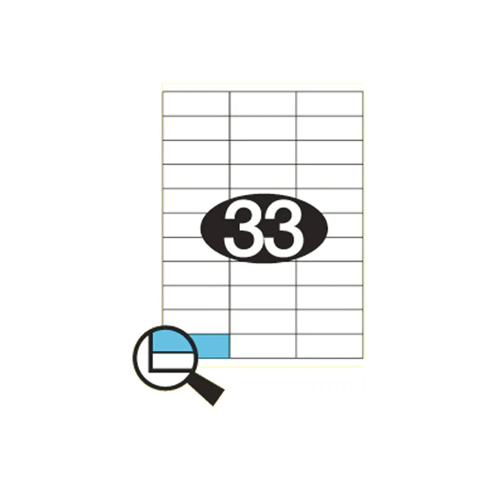 33 etiketter på hvert A4 ark i størrelse 70x25,4mm (BxH).