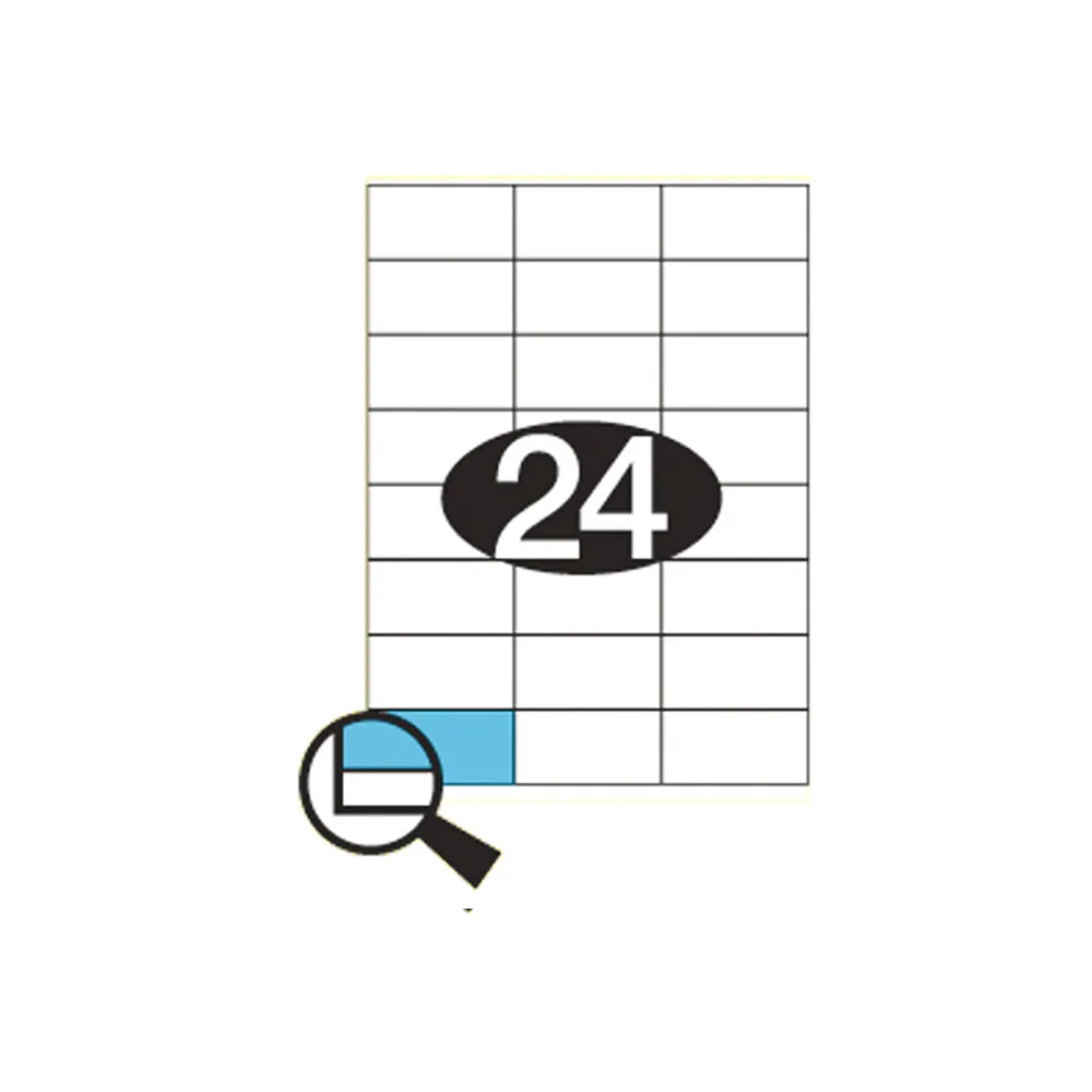 24 etiketter på hvert A4 ark i størrelse 70x36mm (BxH).