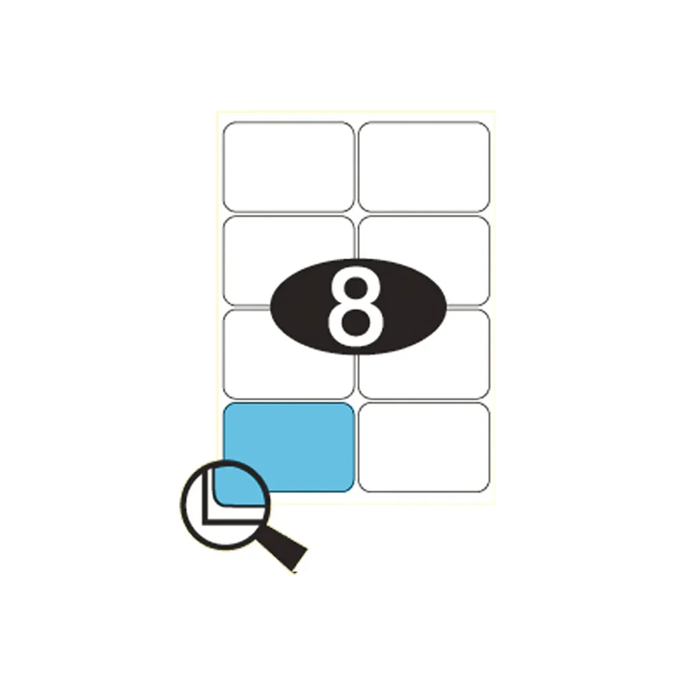 8 etiketter på hvert A4 ark i størrelse 99,1x67,7mm (BxH).
