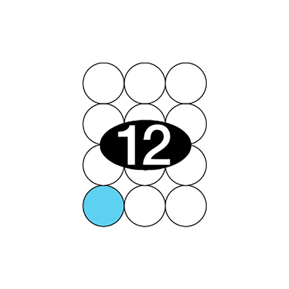 12 etiketter på hvert A4 ark i størrelse Ø60mm (BxH).