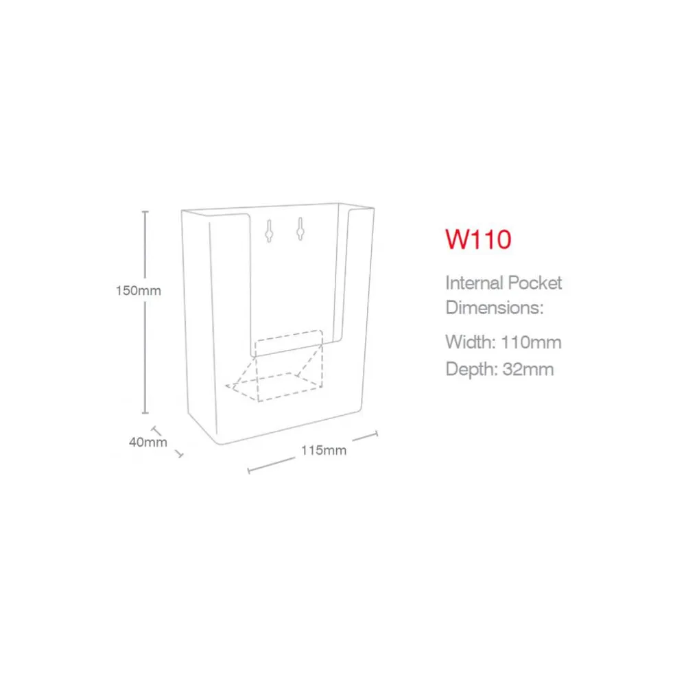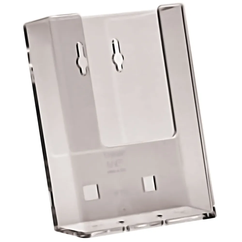 Brosjyreholder i klar akryl, som kan skrus eller limes på vegg.