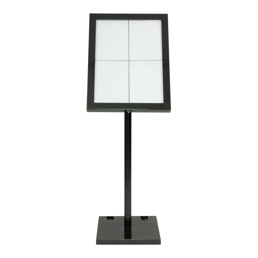Pulverlakkert rustfri stålramme med silikonhjul.Brukes på fot og stang til Meny- / Informasjonsholder.