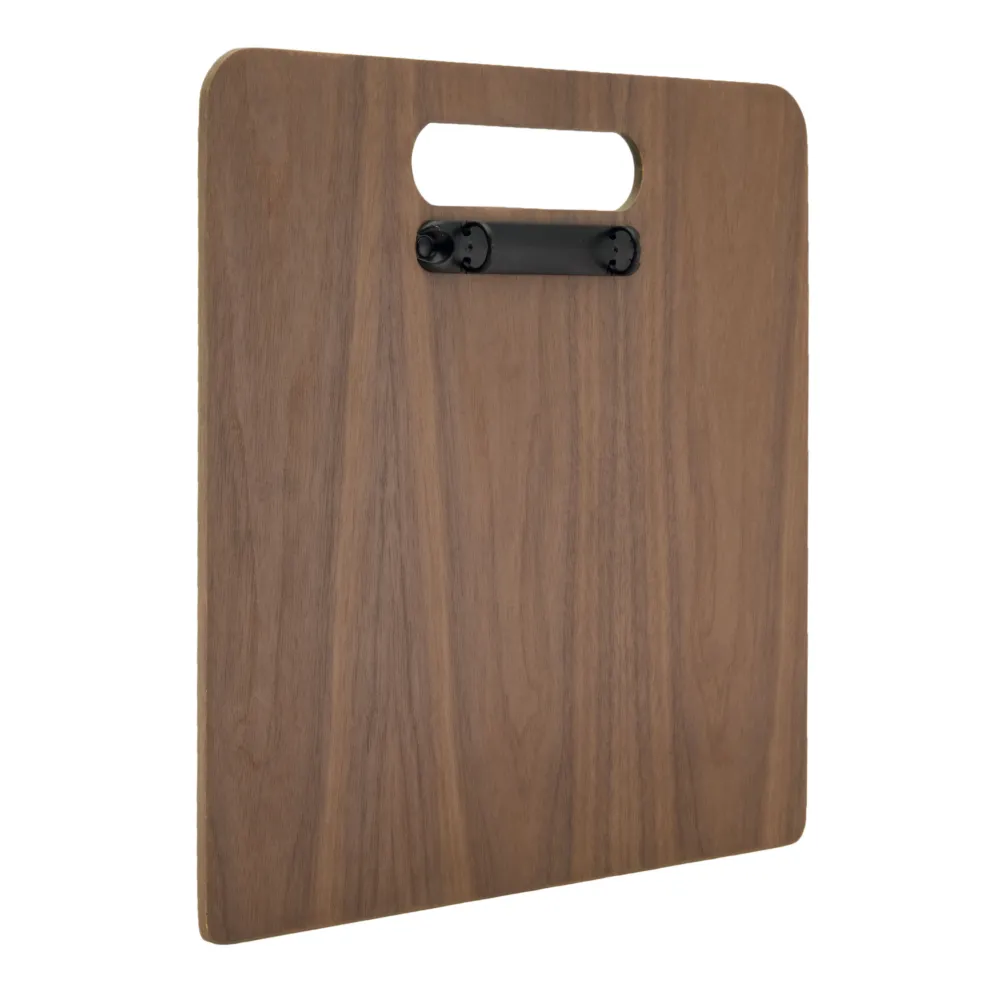 Regningsholder i lakkert valnøtt med sortlakkert klype.