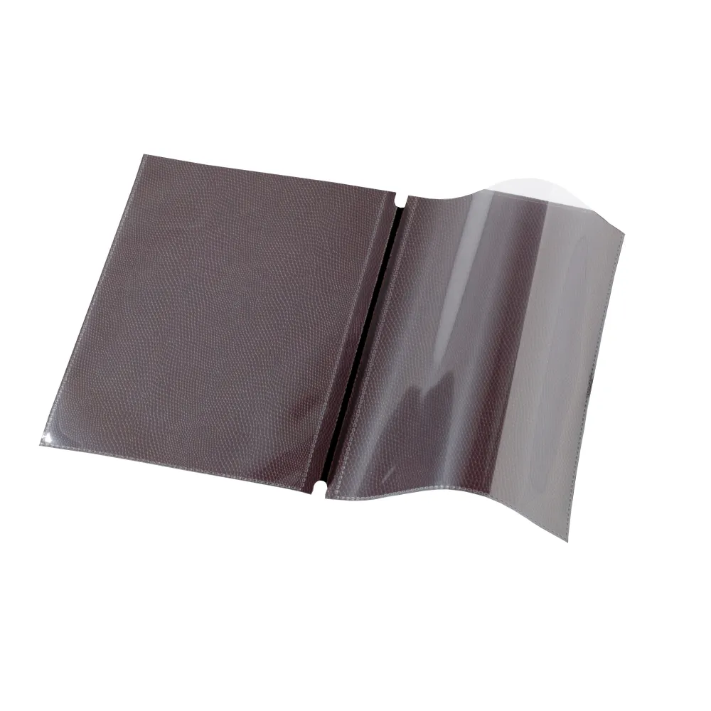 Vis mer Favoritt Menymappe Crystal 4xA4,dobbel Referanse: 325794 Enkel refleksfri menymappe med sydde kanter, metallhjørner og lett å rengjøre. Favoritt