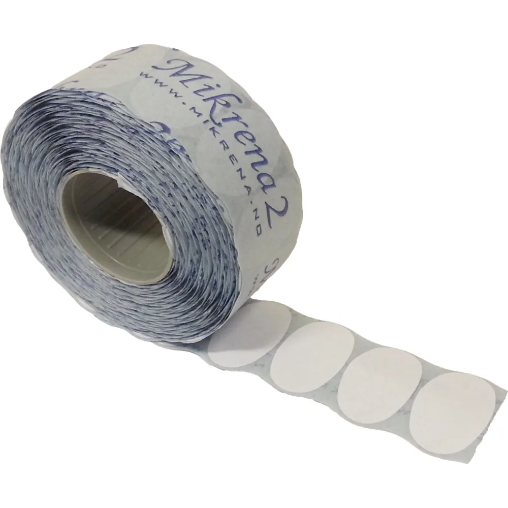 Oval etikett for bruk i Blitz prismaskin og Mikrena Pricer. Etikettstørrelse 26 x 16mm. Permanent lim.
