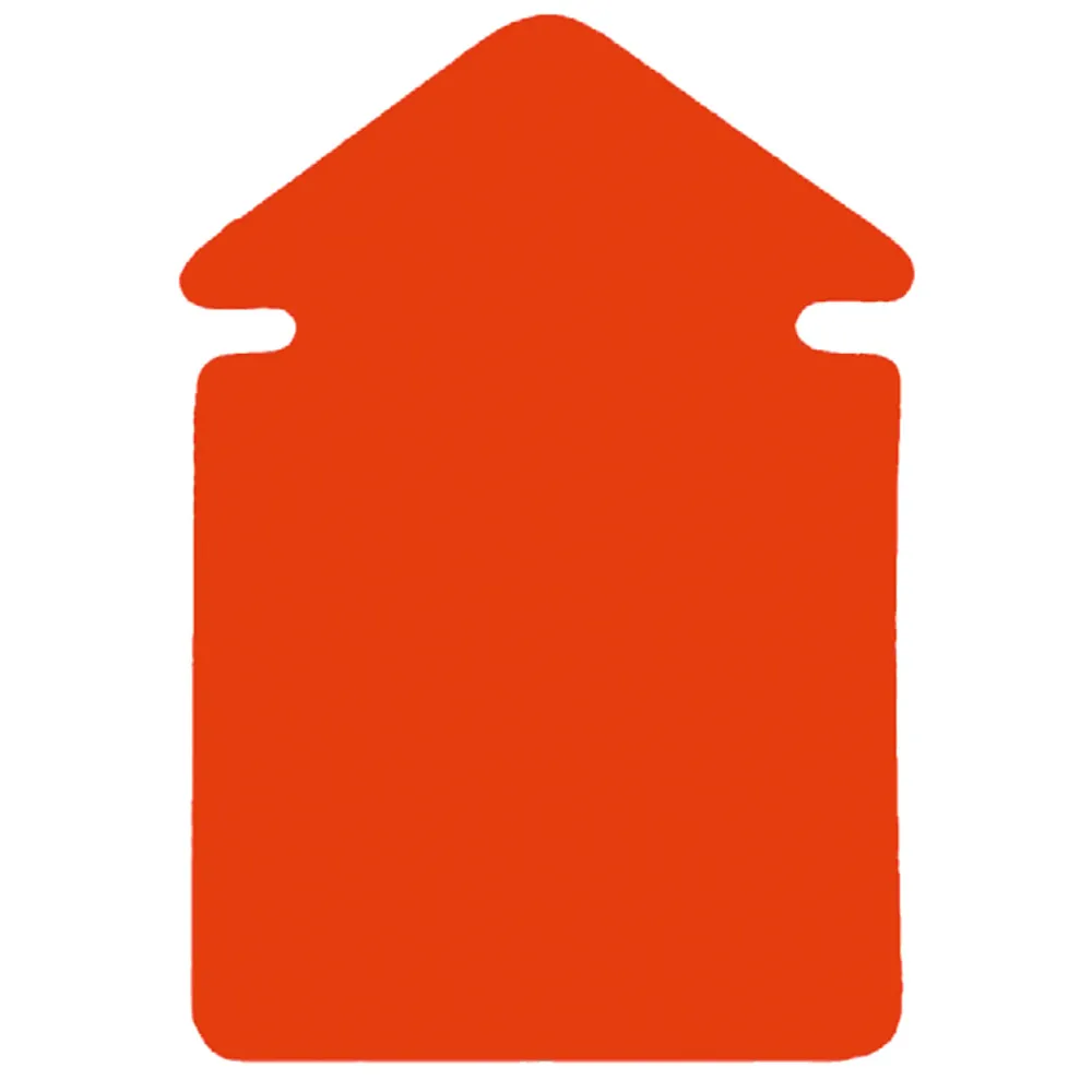 Rød fluorfarget kartong utstanset som en pil i størrelse 23 x 16,5 cm.