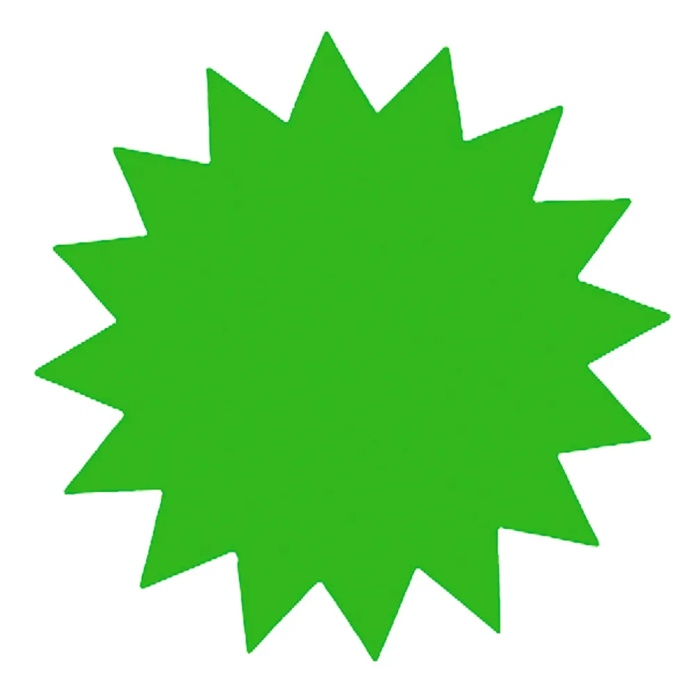 Grønn fluorfarget kartong utstanset som en stjerne i størrelse Ø 35 cm.