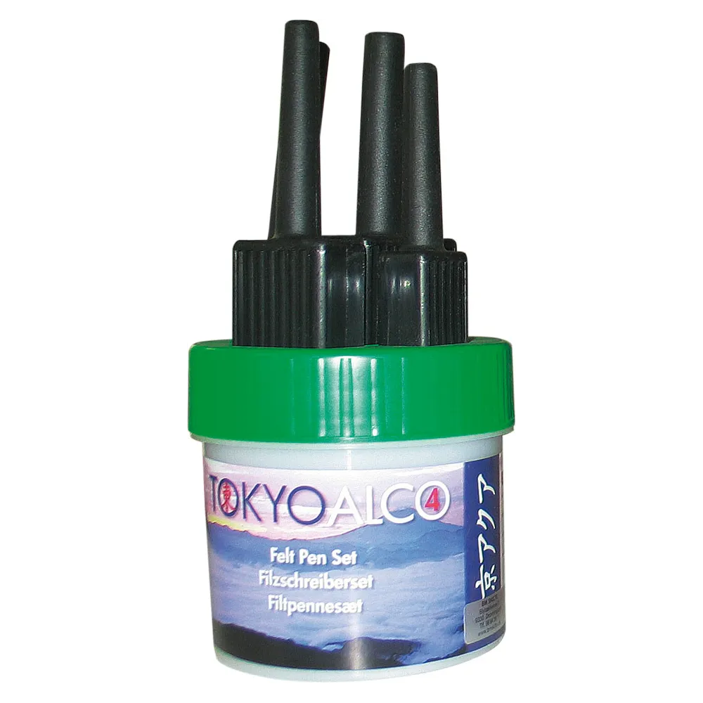 Tokyo Alco alkoholbasert tusjsett, med 4 filtpenner for plakatskriving.