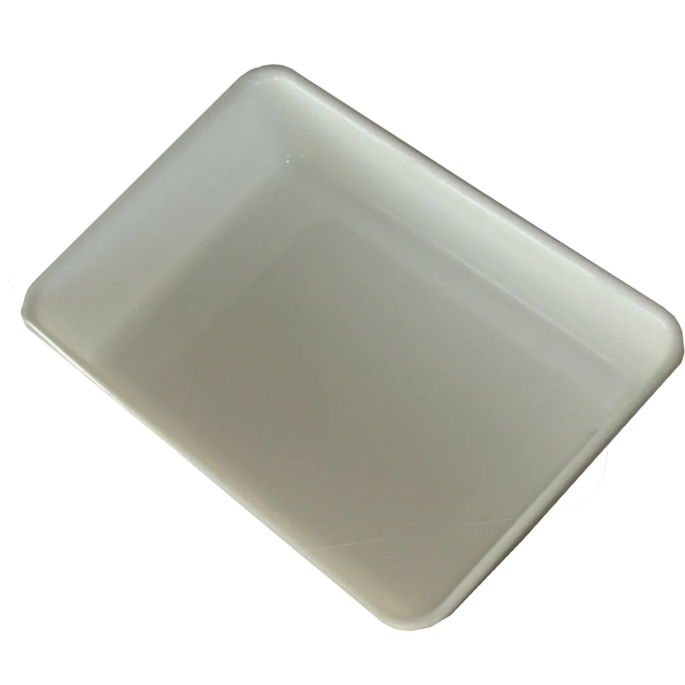 Hvitt serveringsfat/ plastbakke i stabil plast, for delikatessevarer.