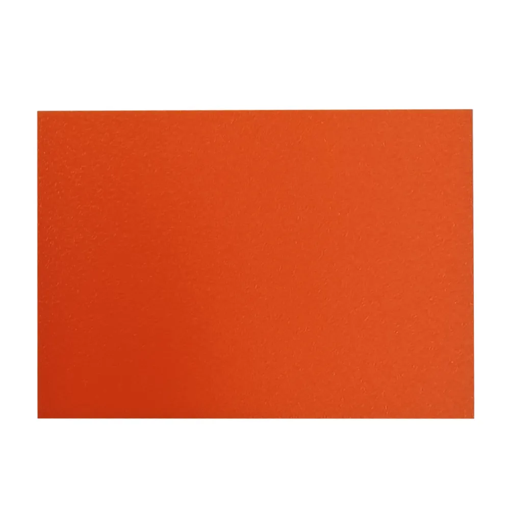 Orange fluoriserende plastplakat i størrelse 8 x 5,5 cm.