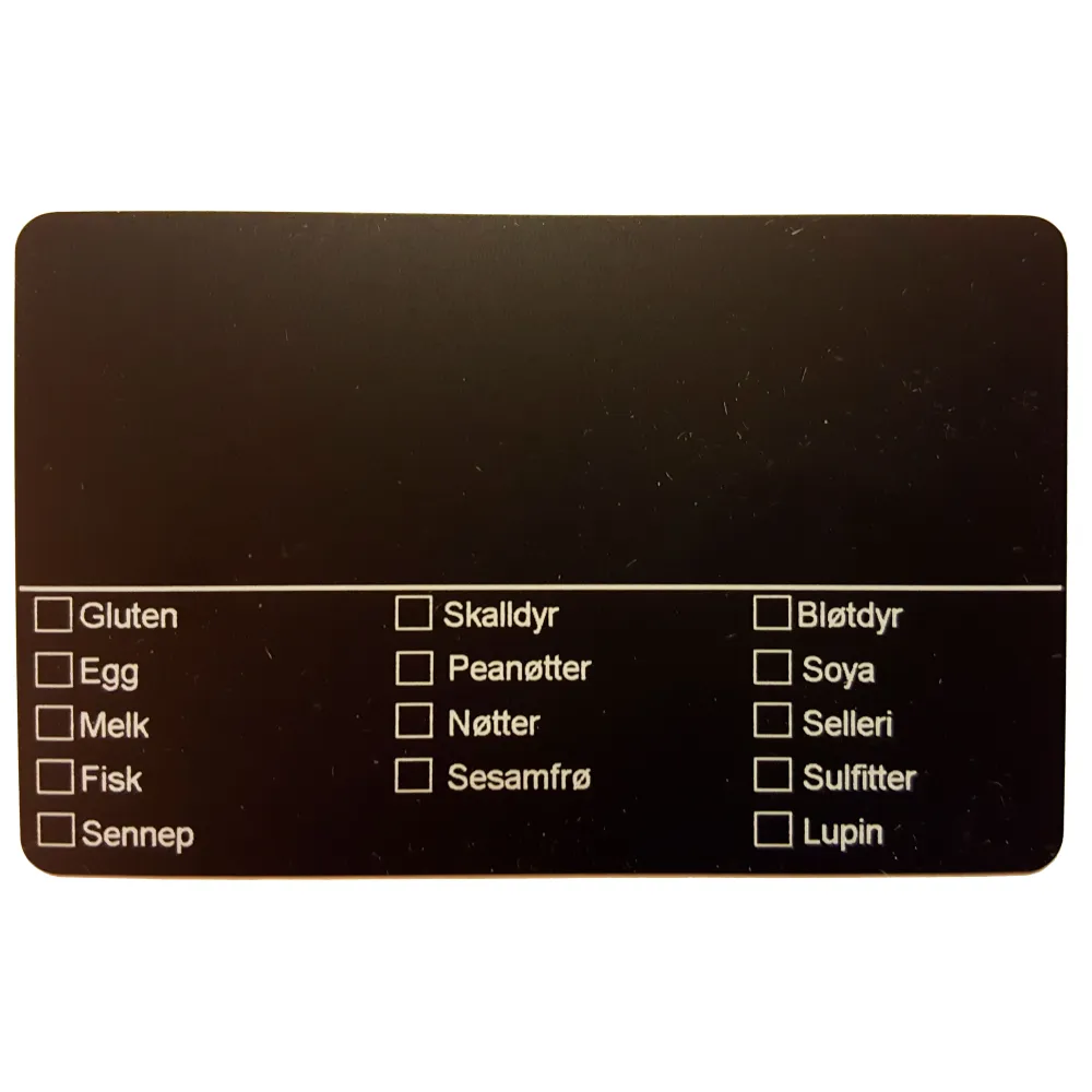 Kort til bruk i ferskvaredisker som trenger allergenmerking.