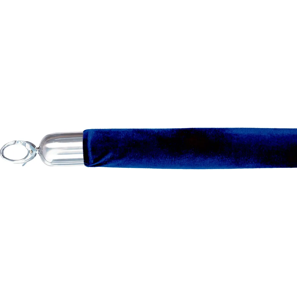 Blått fløyelstau, 1,5m, med sølvfarget krok i begge ender.