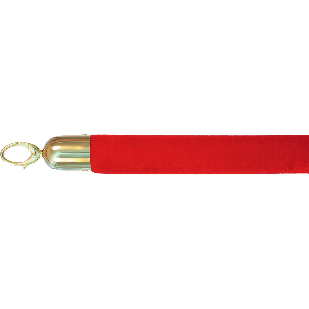 Rødt fløyelstau, 1,5m, med gullfarget krok i begge ender.