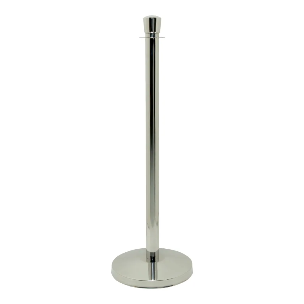 Sølvfarget stolpe med kjegleformet topp, og spor for feste av tau.