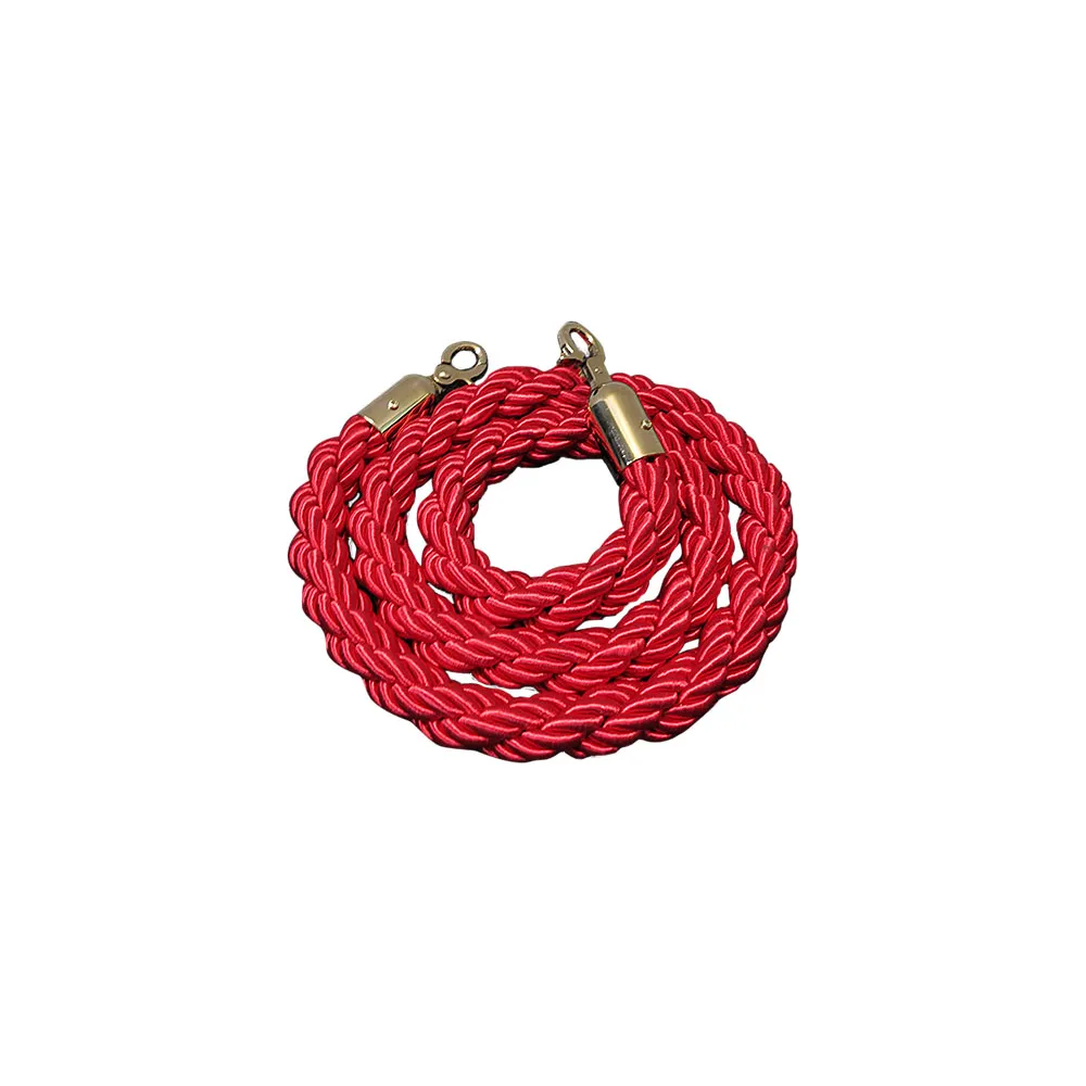 Rødt tau, 1,5m, med gullfarget krok i begge ender.