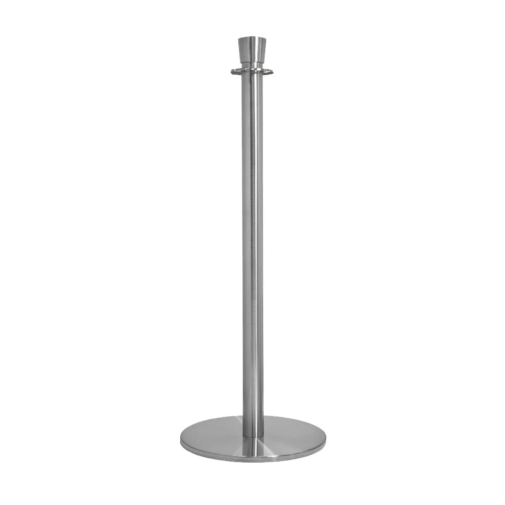 Sølvfarget stolpe med kjegleformet topp, og spor for feste av tau.