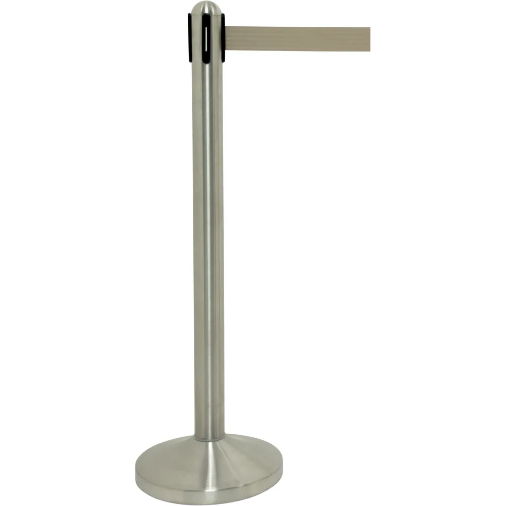 Sølvfarget stolpe, med grått uttrekkbart bånd på 2,1m.